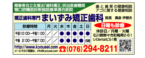 | 住所 | 石川郡野々市町稲荷2-51 U-Dentalビル1階 |