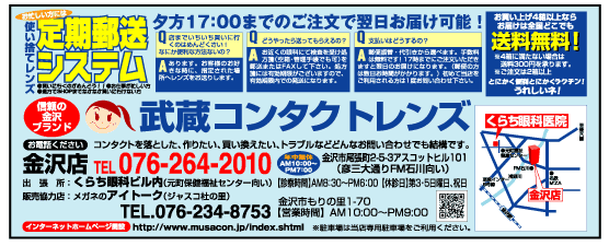 信頼の金沢ブランド!!コンタクトレンズは地元で!
