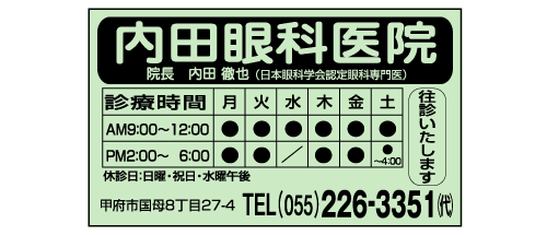 | 時間 | AM9:00-12:00 PM2:00-6:00 土午後は4:00まで |