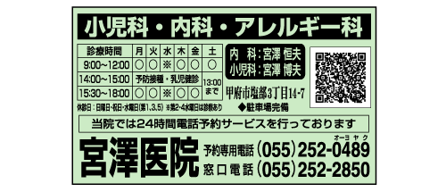 | ホームページ URL | http://www.myclinic.ne.jp/miyazacl/ |