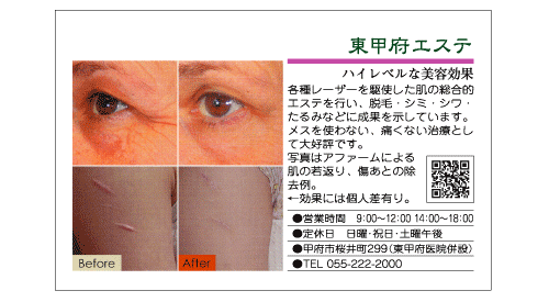 形成外科領域の一環として、2004年より医師による医療エステ(メディカルエステ)を開始しました。簡易エステによる事故やトラブルが数多く報告されている昨今、医療用レーザー治療機を用いた安全で安心の全身脱毛や、シミ・そばかすの改善など、医療施設でのみ使用できる機器を多用し、一人ひとりにあった医療エステを提供しております。