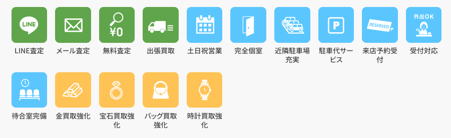 主に、金・プラチナ・貴金属 ・宝石類・時計・ブランド品の買取のことなら、お任せください。他にも、切手や金券・テレカ・古銭 ・記念コイン・メダル・骨董品・衣類・中国切手・真珠・ カメラ・小型家電から楽器等、多くのお品物の高価買取りを実現しており、他店ではお値段の付かなかったものでも、《一点一点丁寧に無料で査定》します!