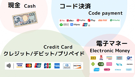 現金、コード決済、電子マネー、各種クレジットカードでのお支払いが可能です。