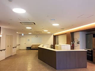 当院は、「ハートケア西宮わたなべ福祉の郷」の1階と2階フロアーで、1階は外来診療室、リハビリテーション室、2階フロアーに26床の病室構成となります。