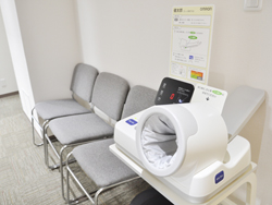 心電図;日本光電製、血圧脈波装置;オムロンコーリン製(動脈硬化の測定をします。)