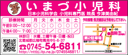 | 時間 | 午前9:00-12:00 午後4:00-7:00 予防接種・乳児健診は予約をして下さい。 |